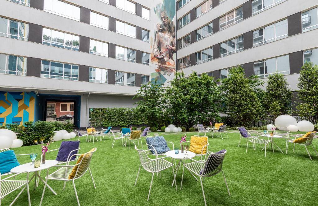 Le camere contemporanee dell'hotel, decorate con audaci opere d'arte urbana e mobili di design, creano un'atmosfera dinamica che favorisce la creatività e la produttività. Per rilassarsi, gli ospiti possono rilassarsi nel bar elegante o godere della terrazza sul tetto dell'hotel con una vista mozzafiato sullo skyline di Milano. Il centro fitness dell'hotel garantisce che i viaggiatori d'affari possano mantenere la loro routine durante il soggiorno.